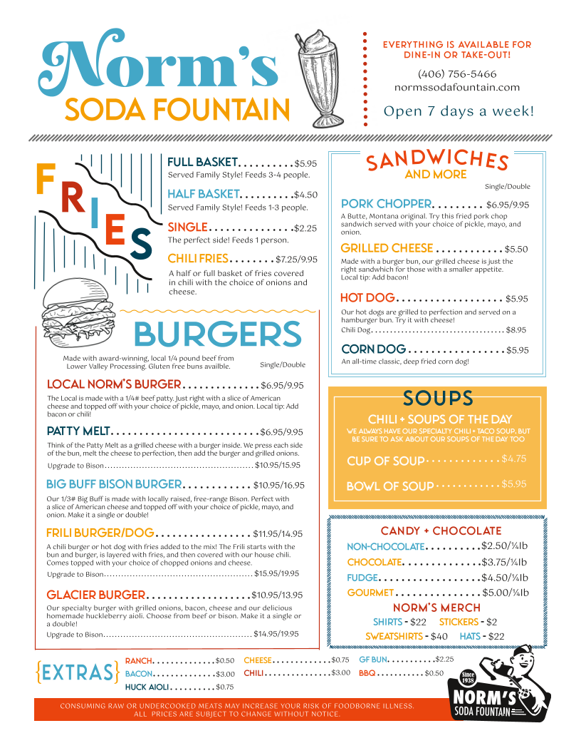 Welcome to Norm's Soda Fountain, a delightful eatery located at 34 S Main St, Kalispell, MT, where nostalgia meets culinary creativity. This charming soda fountain offers an impressive menu that captures the essence of classic Americana.